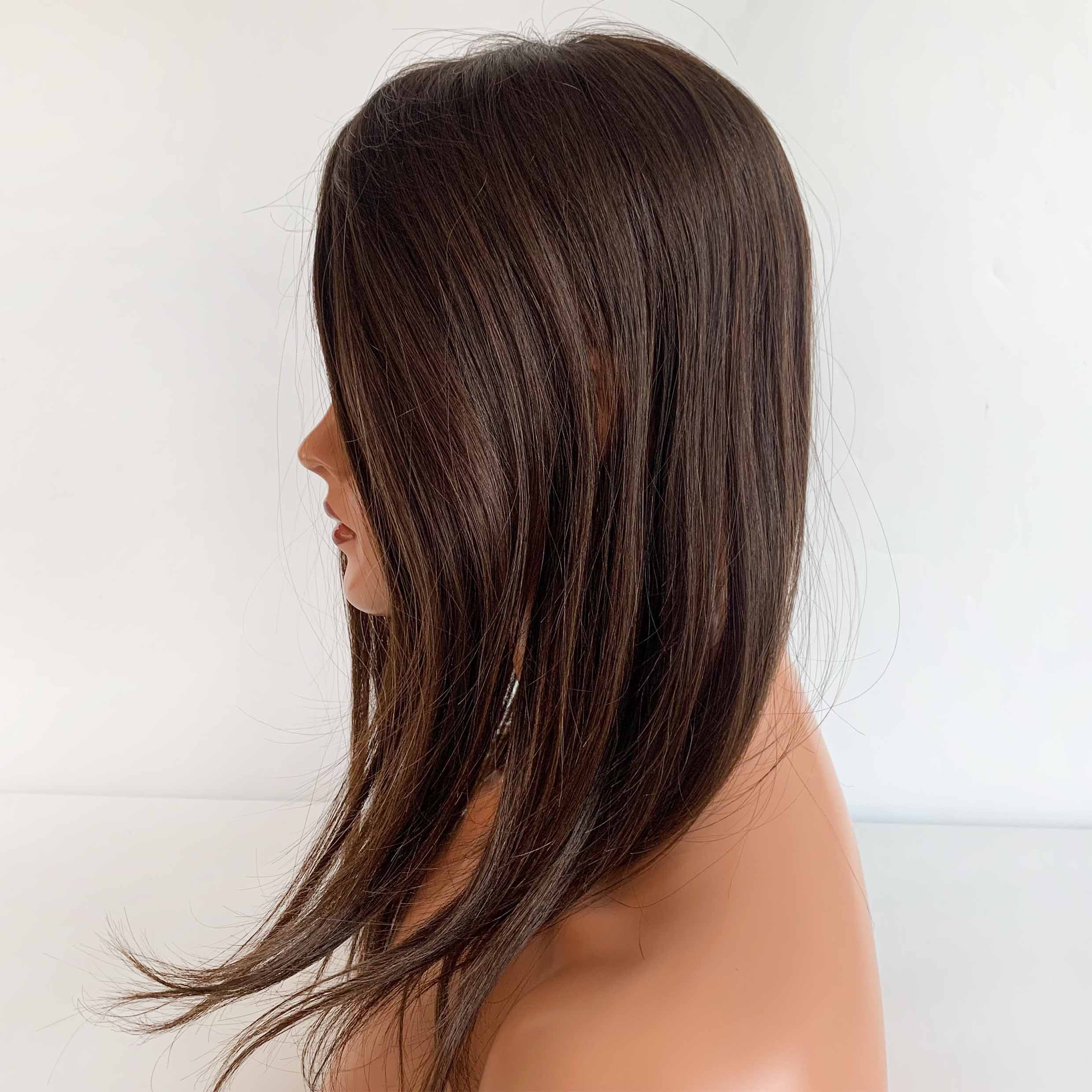 A: The open mesh base and wefts may be visible if the hair is parted or styled away from the base. For this reason, the Fish Net Topper is best suited for women who wear their hair down, in low ponytails, or in styles that keep the base covered. For a completely undetectable look, we recommend our Silk Topper or Lace Topper.