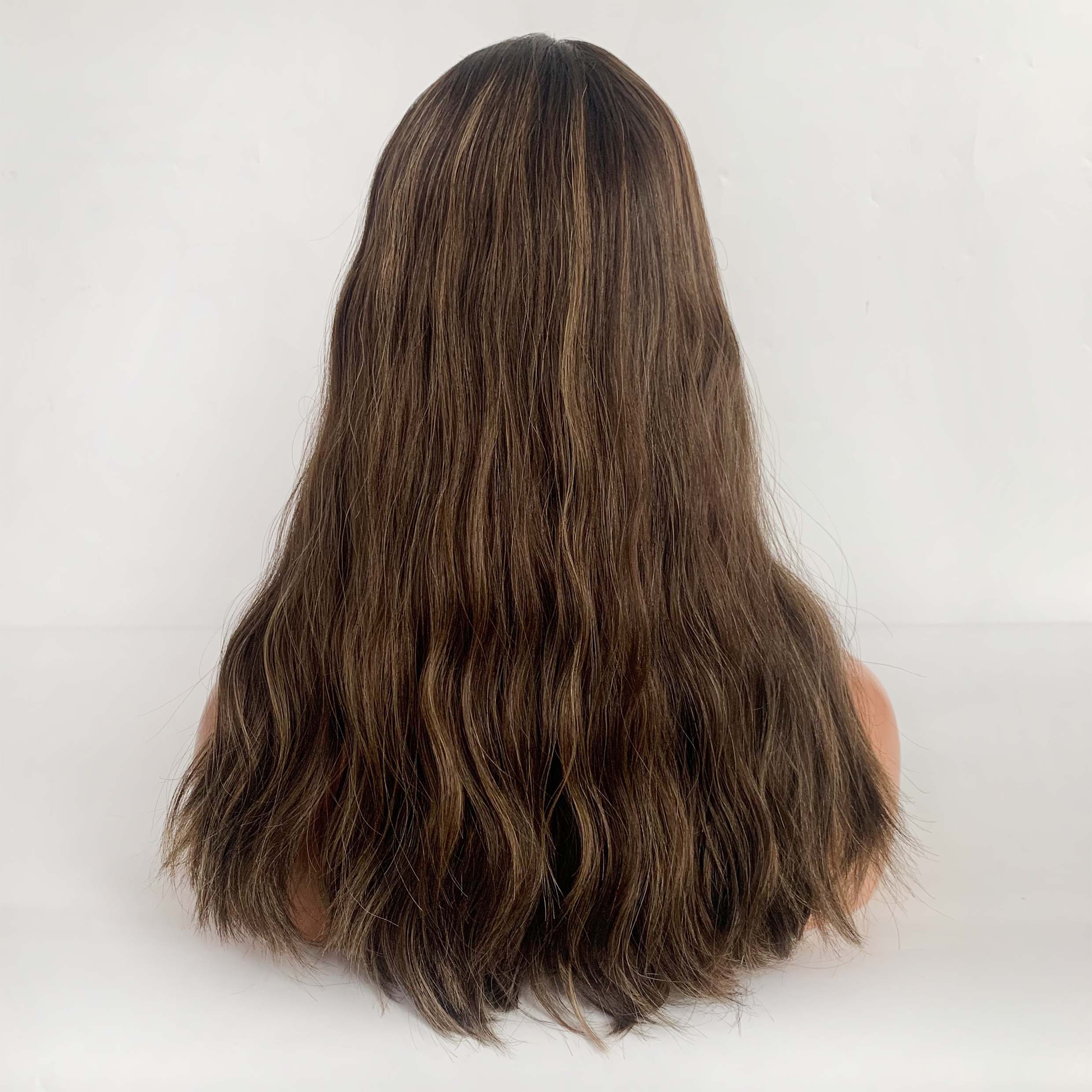 At NEW ONE WIGS, we create wigs that combine artistry with comfort. This 20-inch wavy hand-tied wig features 100% hand-knotted construction—every hair individually tied into a soft, breathable mesh cap, creating the illusion of natural growth from your scalp.