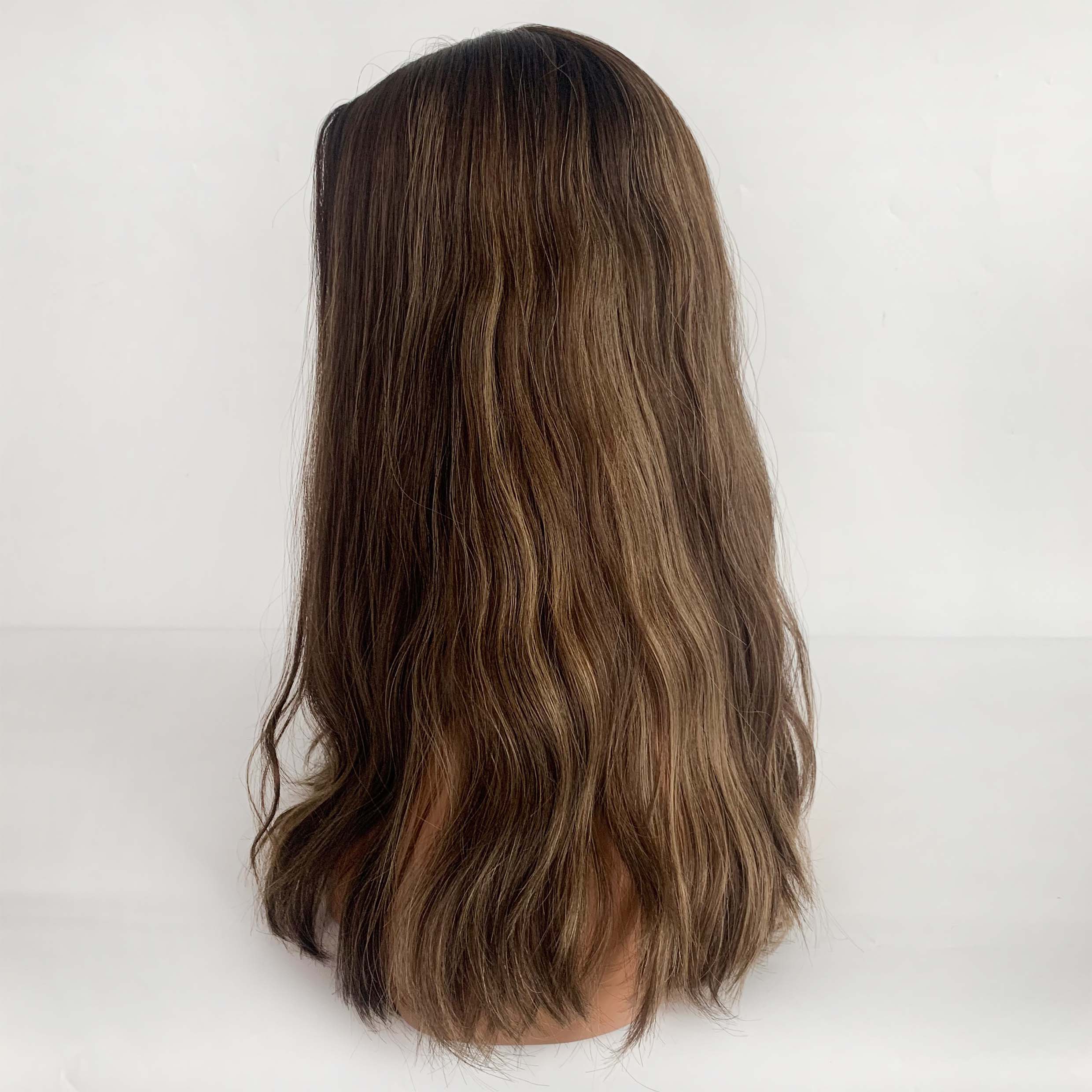 At NEW ONE WIGS, we create wigs that combine artistry with comfort. This 20-inch wavy hand-tied wig features 100% hand-knotted construction—every hair individually tied into a soft, breathable mesh cap, creating the illusion of natural growth from your scalp.